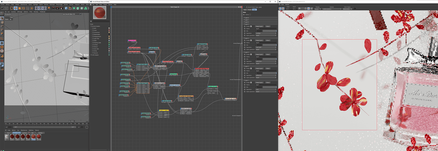 En utilisant les techniques avancées de matériaux 3D avec Arnold, nous avons créé des shaders entièrement procéduraux pour nos fleurs en 3D, ce qui nous a permis d'avoir un design totalement unique pour chaque pétale.