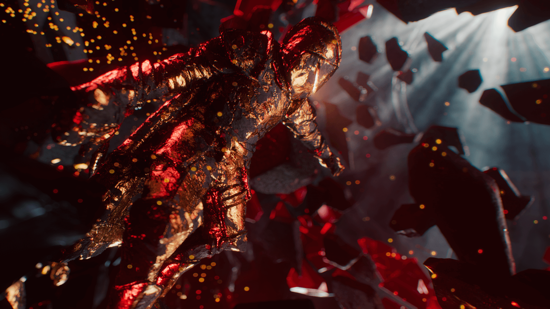 Notre équipe créative proposa l'idée que les chevaliers de la Table ronde activent un mécanisme ancien pour modifier la gravité et déplacer les rochers, révélant ainsi la nouvelle montre. Nous avons soigneusement sculpté des chevaliers très détaillés, en utilisant un shader d'or personnalisé dans Arnold pour créer un design réaliste et complexe. Le shader nous a permis de créer une transition fluide entre le style rocheux et la matière dorée des chevaliers.