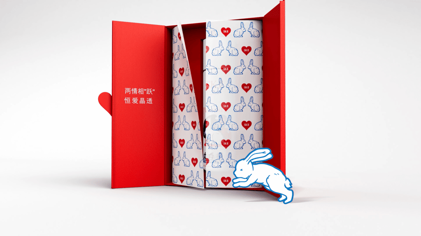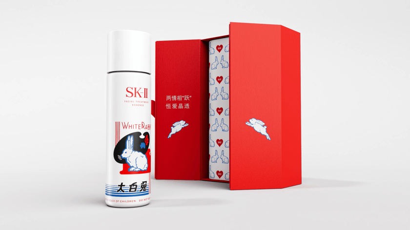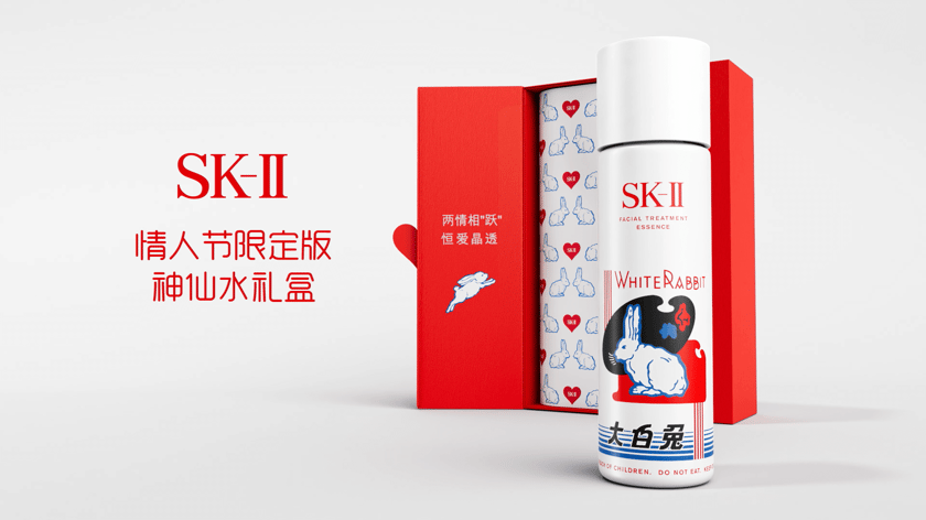 Dans ce premier film, nous nous concentrons sur le dévoilement du design de la bouteille SKII x White Rabbit en édition limitée, ainsi que sur le coffret cadeau de la Saint-Valentin qui l'accompagne. Nous suivons un lapin qui saute sur le flacon original FTE, le transformant en une édition limitée, qui révèle ensuite le coffret cadeau.