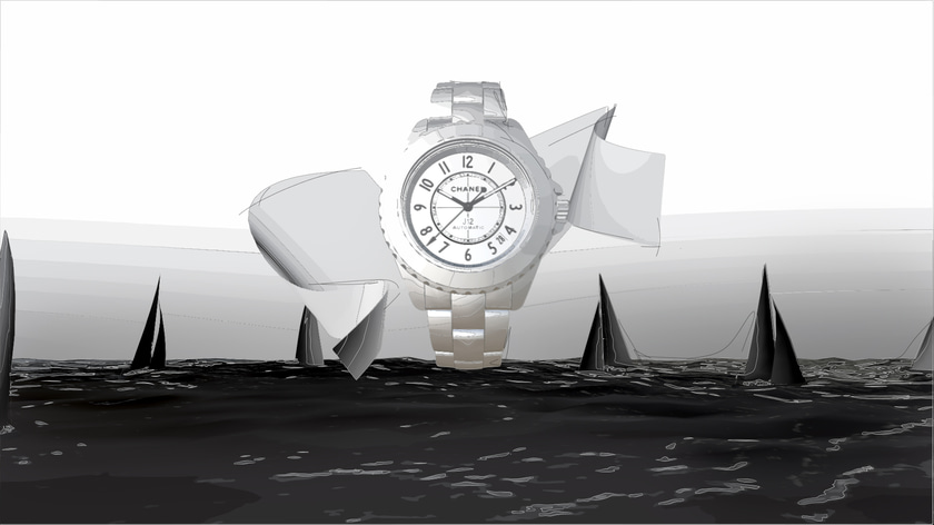 We had to highlight 3 themes specific to the J12 DNA : high performance ceramic, automotive and sailing.
