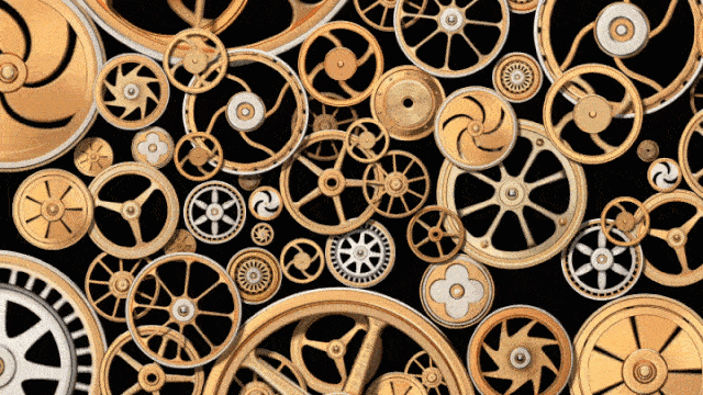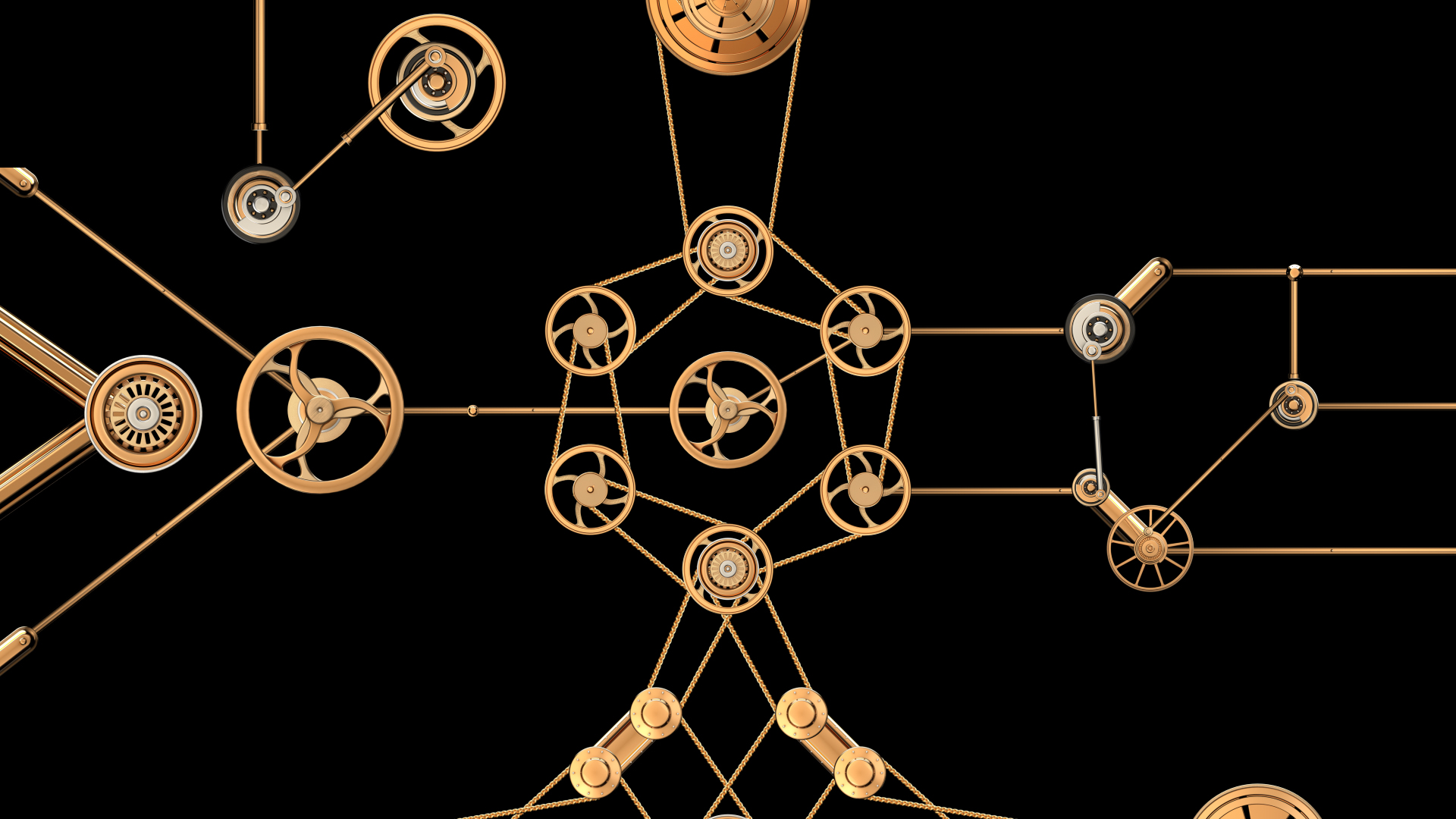 We created dozens of 3D cogs, in order to mix them and obtain complex-looking mechanism.