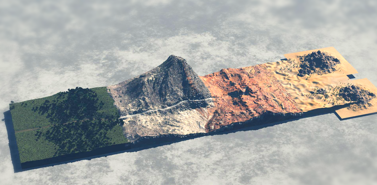 We had to create a 2km road, passing through various landscape : forest, mountain, canyon and desert.