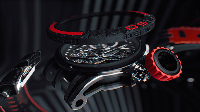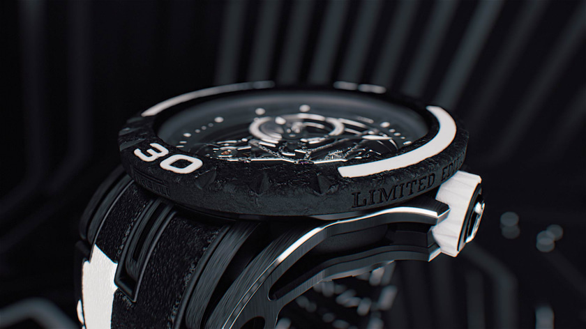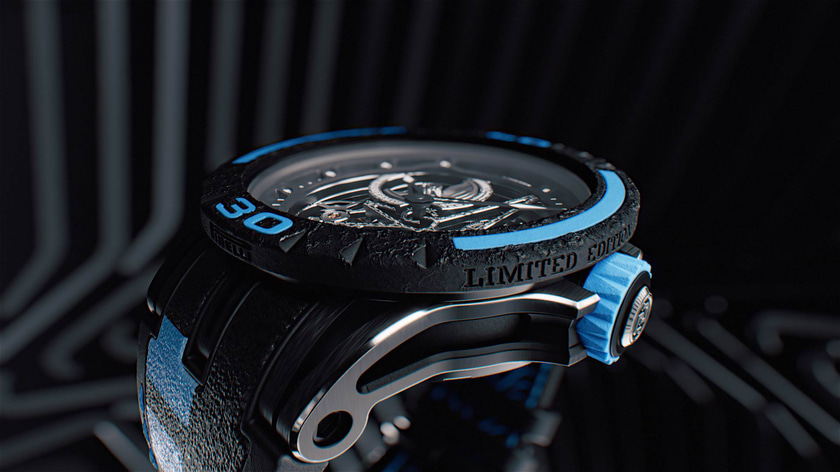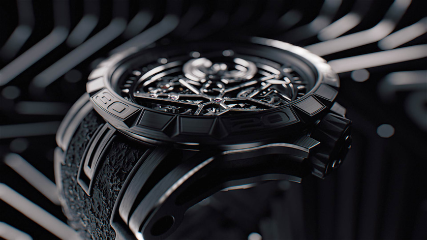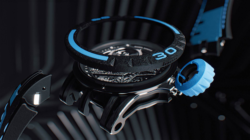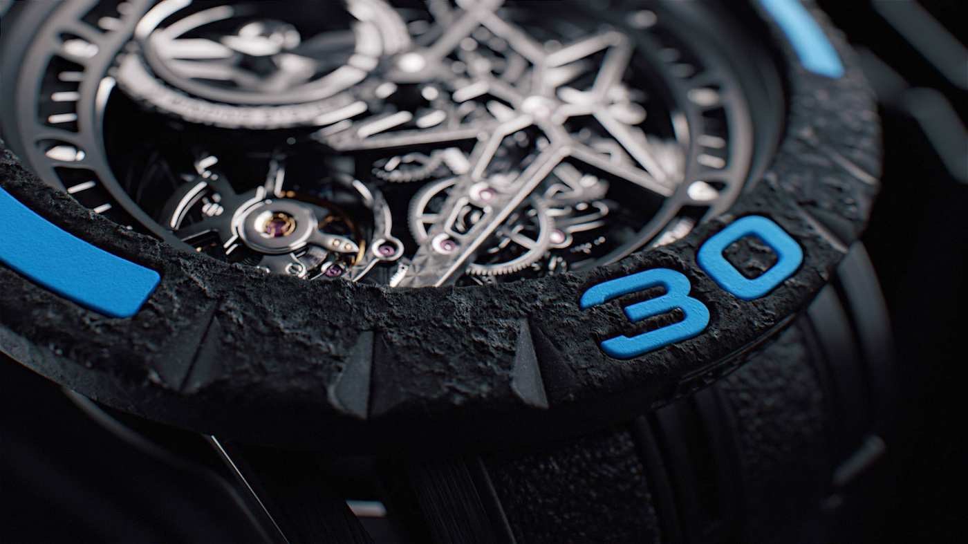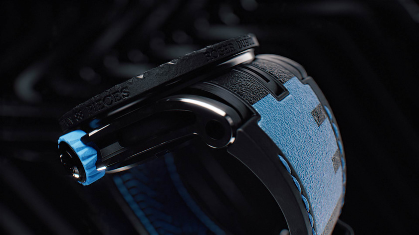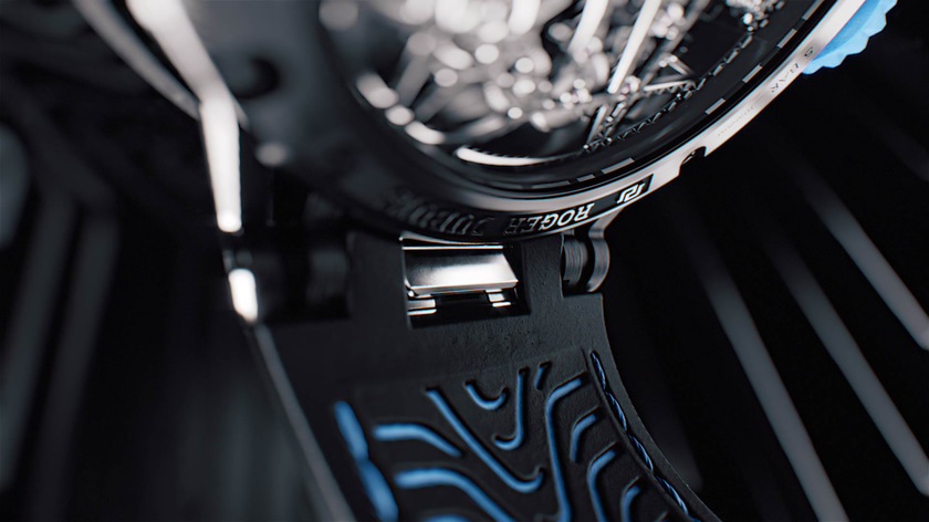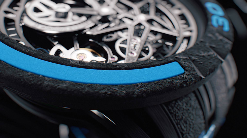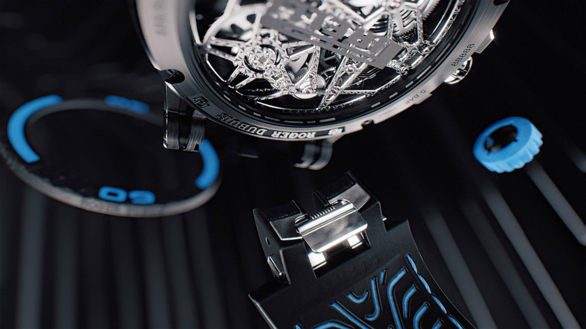 We used 3D sculpting tools to create organic details on various parts of the watch, such as the bezels of the case, the rubber crown and the straps patterns.