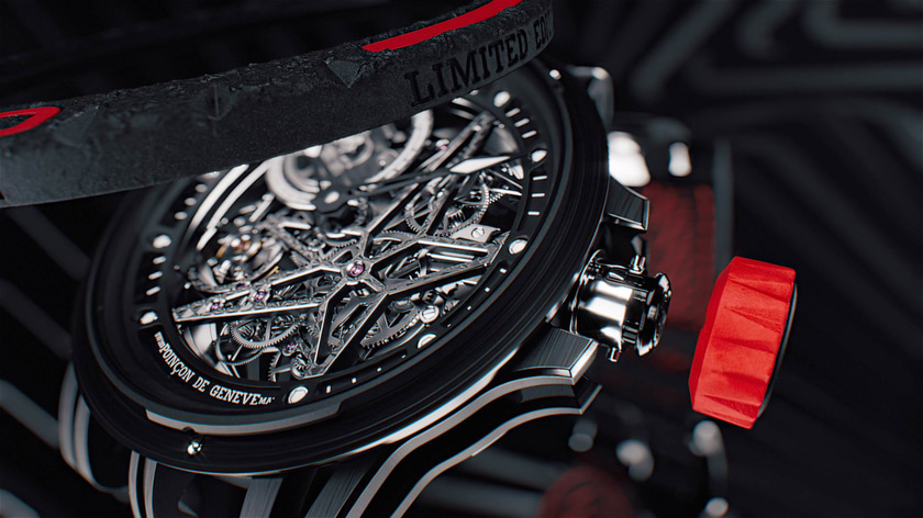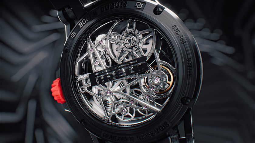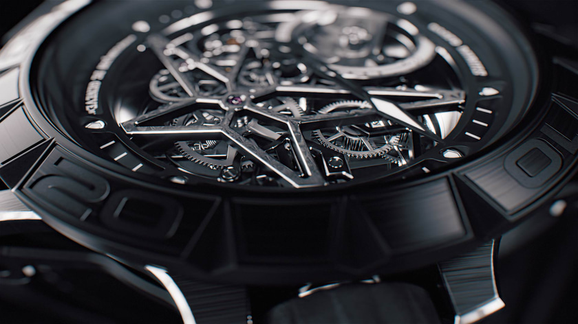 All the gears of the watch movement were animated using a custom made plugins that allowed us to rig all the gears. Each ones move depending on their real number of teeths, giving an accurate animation of the whole mechanism.
