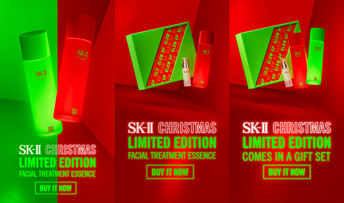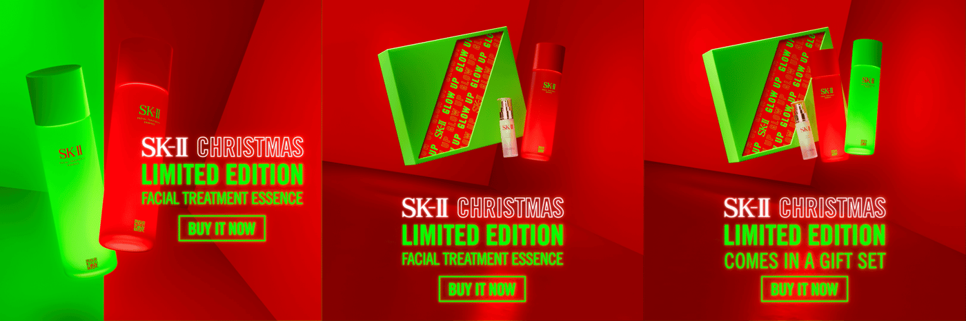 Our 3D animation studio recently worked with Leo Burnett and Prodigious for the SKII Hyperfestive campaign. We created several films showcasing limited edition SKII FTE bottles, which feature a unique glowing effect in vivid red and green colors.