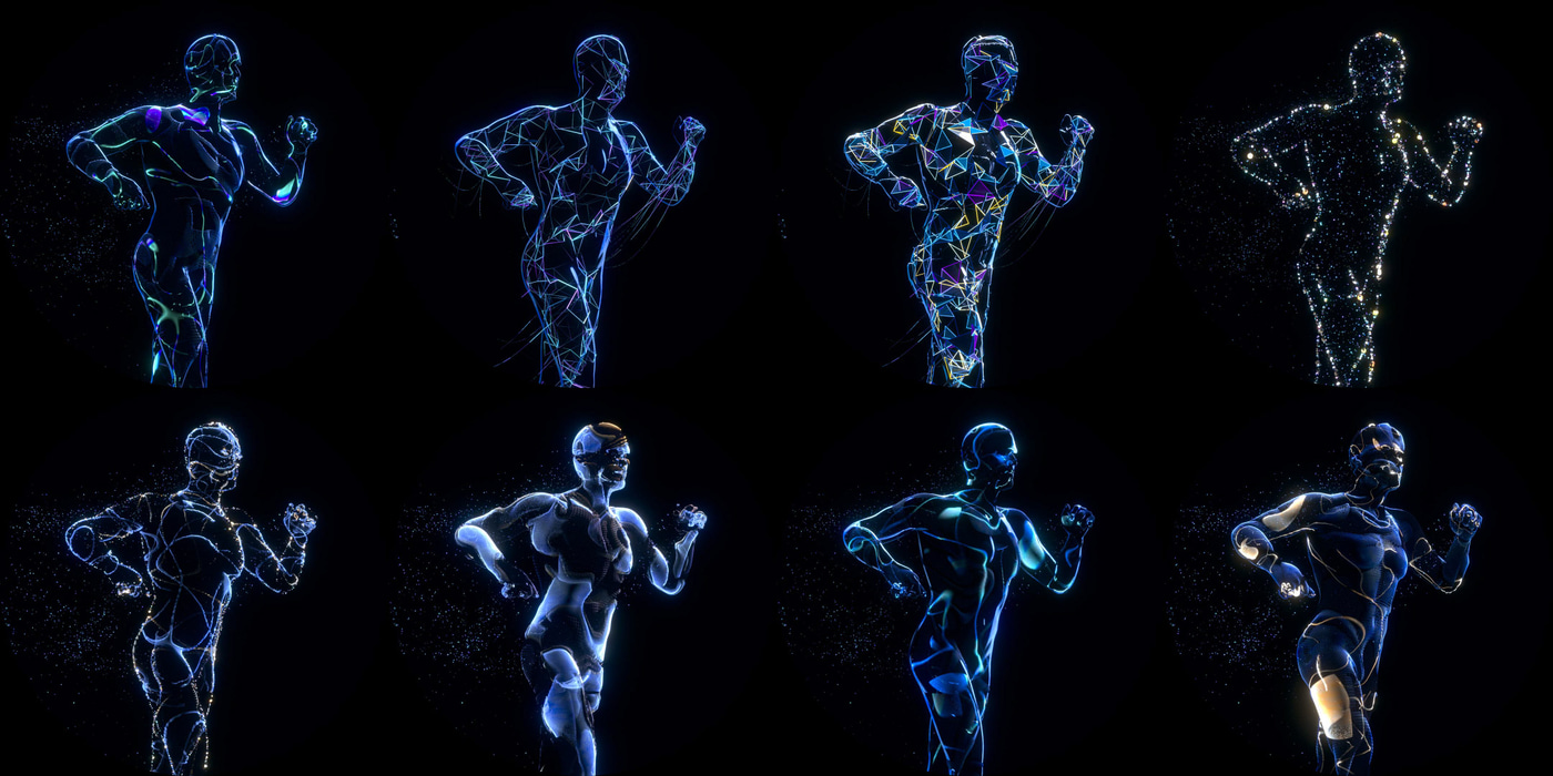 The virtual avatar was a key part of the project, as it was the main visual element that users would see on the watch face. We proposed a lot of crafted original stylized designs for the virtual coach, experimenting with particles, abstract and organic forms, polygons, and wireframe graphics.